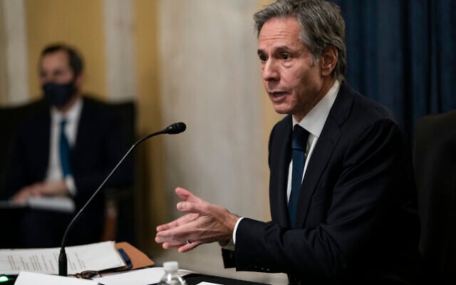 Tony Blinken says in confirmation hearing that US commitment to Israel’s security is ‘sacrosanct,’ backs two-state solution but doubts it will happen in near future
