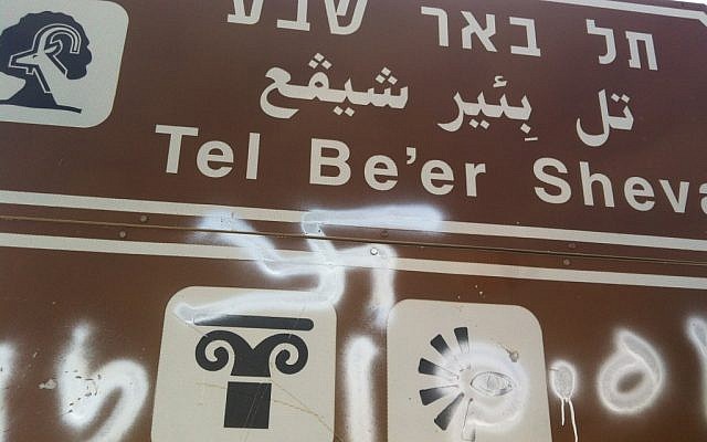 On Holocaust Memorial Day in April, swastikas were painted on the sign for Tel Beersheba National Park.
